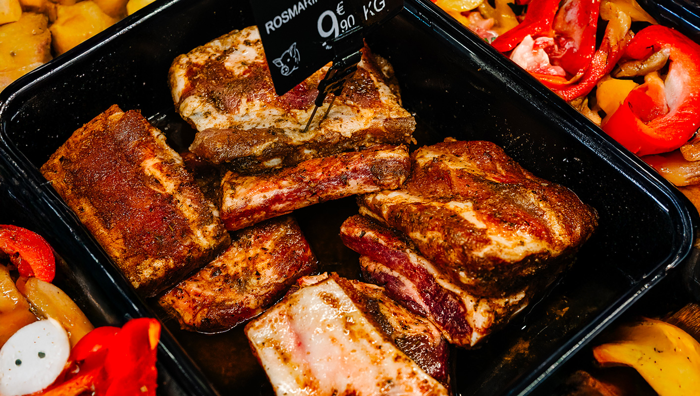 Nella Macelleria Grangusto ogni taglio nasce da una scelta attenta: filiera controllata, allevamenti che garantiscono benessere animale, frollature che esaltano sapore e tenerezza. Proponiamo carni bovine di razza pregiata, suino italiano e pollame ruspante. Dalle costate marezzate ai tagli magri, dal macinato fresco alle preparazioni dello chef. La lavorazione è quella di una volta: manuale, rispettosa, precisa. // Nel nostro reparto trovi qualità certificata, consigli esperti e il piacere della carne autentica.